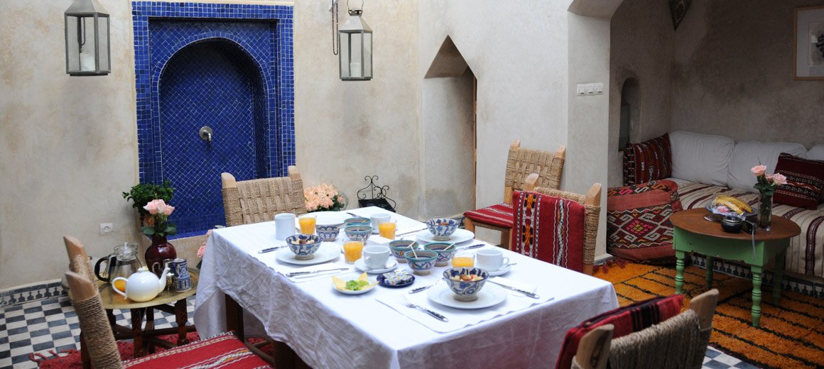 Dar Daoud Marrakech is a charming and authentically designed riad located in the heart of the Marrakech Medina, just a short walk from Jemaa el-Fna square, offering guests a peaceful retreat full of Moroccan warmth and character. The property beautifully combines traditional architecture with a cozy, intimate ambiance — featuring colorful zellij tilework, carved wooden details, and a serene central courtyard filled with natural light. Each room is tastefully decorated in classic Moroccan style, with handcrafted furnishings, rich fabrics, and modern comforts to ensure a relaxing stay. Guests can enjoy a delicious homemade Moroccan breakfast each morning, served in the courtyard or on the rooftop terrace with sweeping views of the Medina. The riad’s calm atmosphere, central location, and friendly, attentive hosts create a welcoming home-away-from-home experience. Blending culture, comfort, and authenticity, Dar Daoud Marrakech offers a delightful stay in one of Morocco’s most vibrant and historic cities.