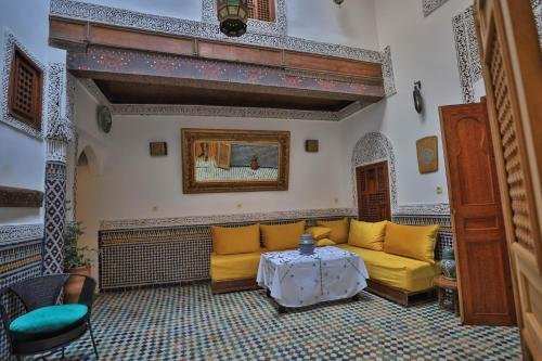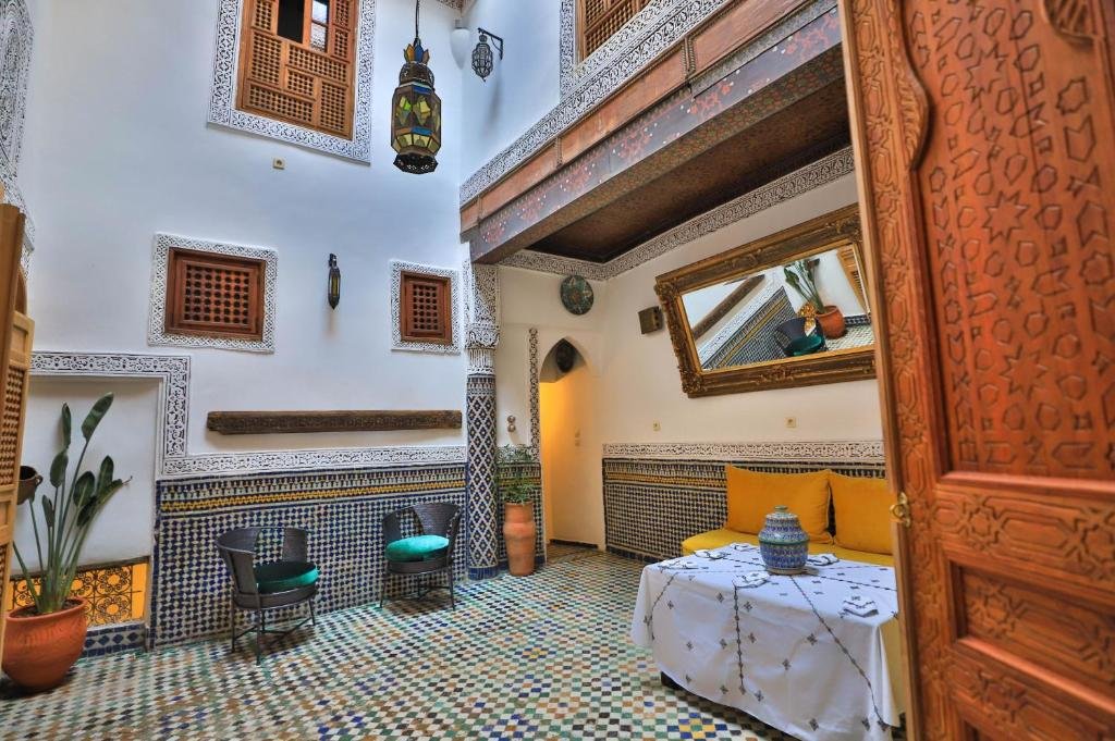 Dar Demlij Fes is a refined riad-style guesthouse set in the heart of Fes Medina, where traditional Moroccan elegance meets modern sophistication. Housed in a beautifully restored historic building, the property showcases exquisite craftsmanship with hand-carved plaster, vibrant zellij tiles, and intricate wooden ceilings that reflect the city’s rich artistic heritage. Each room is individually designed, offering a blend of comfort and style with soft lighting, plush bedding, and private bathrooms equipped with modern amenities. Guests can begin their day with a freshly prepared Moroccan breakfast served on the panoramic rooftop terrace, offering sweeping views of the Medina’s ancient rooftops. The riad’s peaceful courtyard and lounge areas provide tranquil spaces to relax after exploring the bustling souks and cultural landmarks nearby. With its serene ambiance, personalized service, and authentic décor, Dar Demlij Fes offers an unforgettable experience that embodies the timeless spirit of Moroccan hospitality.