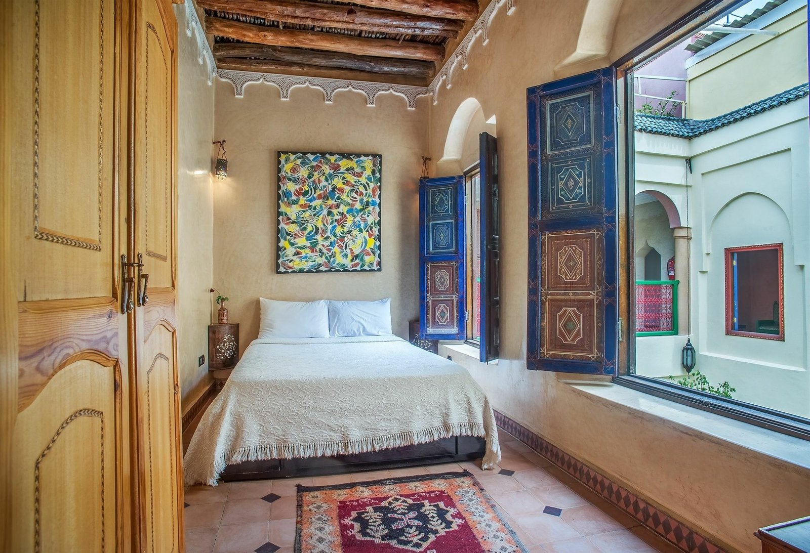 Riad Lalla Aicha Marrakech is an authentic Moroccan guesthouse nestled in the vibrant Medina, just a short walk from Jemaa el-Fna and the city’s main souks. It features beautifully decorated rooms with traditional tilework, carved wood details, and a warm, homely ambiance. Guests can relax in the peaceful inner courtyard, enjoy a traditional breakfast, or unwind on the rooftop terrace with views over the old city. Offering genuine hospitality and a serene atmosphere, Riad Lalla Aicha captures the true essence of Marrakech living.