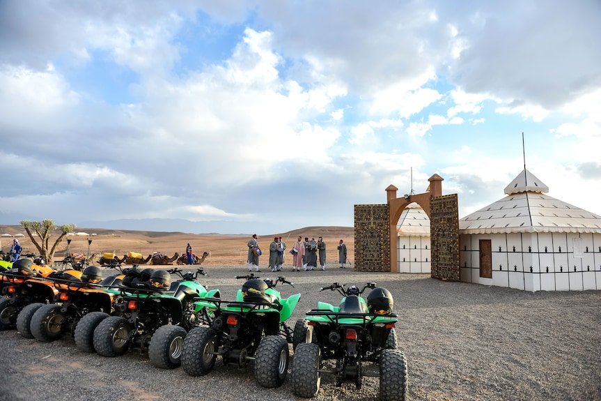 Agafay Pearl Camp Marrakech – Restaurant & Lodge is a luxurious desert retreat nestled in the stunning Agafay Desert, just outside Marrakech. Blending elegance with adventure, it offers beautifully appointed tents and lodges combining modern comfort with authentic Berber style. Guests can dine under the stars at the on-site restaurant, relax by the infinity pool overlooking the rocky dunes, or enjoy activities such as camel rides and quad biking. With its breathtaking views, refined atmosphere, and warm hospitality, Agafay Pearl Camp provides an unforgettable desert experience filled with peace and luxury.
