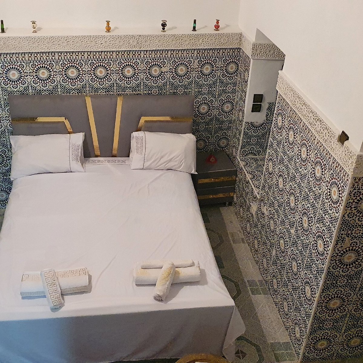 Dar Fes Art Fès is a stylish and artistically inspired riad situated in the heart of the historic Fes Medina, offering a unique blend of traditional Moroccan design and contemporary creativity. The property beautifully showcases Fassi architecture with intricate zellij tilework, carved cedarwood details, and elegant arches, while modern artistic touches bring a fresh and vibrant feel to every space. Each room is individually decorated with a perfect balance of authenticity and comfort, featuring handcrafted furnishings, warm colors, and modern amenities to ensure a relaxing stay. Guests can enjoy a delicious Moroccan breakfast each morning, served in the tranquil courtyard or on the rooftop terrace with panoramic views of the Medina. The riad’s peaceful ambiance and attentive hosts create a welcoming atmosphere, providing personalized service and local insights. Combining art, elegance, and genuine Moroccan hospitality, Dar Fes Art Fès offers an inspiring and memorable stay in one of Morocco’s most enchanting cities.