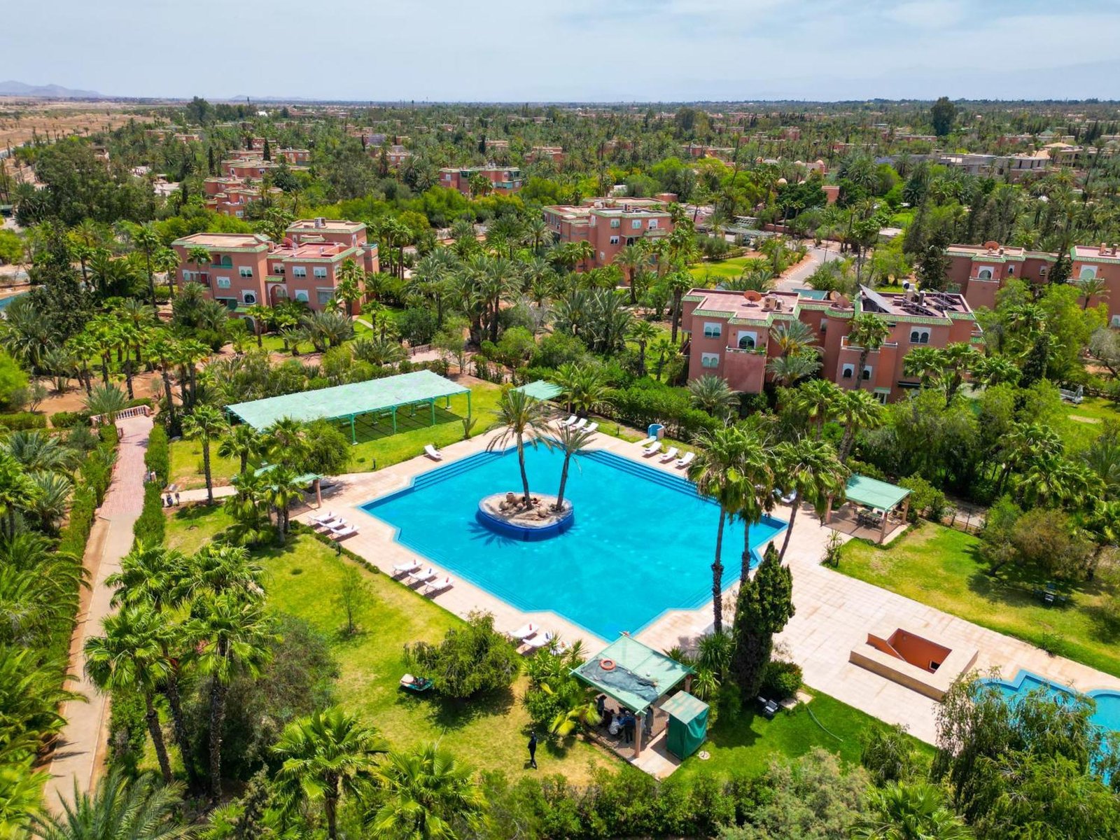 Palmeraie Green Resort Marrakech is a peaceful and elegant retreat set within the lush palm groves of the Palmeraie, just a short drive from the city center. It offers spacious, modern apartments and suites with private terraces or balconies overlooking the gardens, golf course, or pool. The resort features a large outdoor swimming pool, a fitness center, a spa, and on-site dining serving Moroccan and international cuisine. Perfect for families, couples, or golf enthusiasts, Palmeraie Green Resort combines comfort, serenity, and Moroccan charm in a relaxing natural setting.