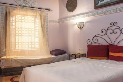 Riad Anass Al Ouali Fès is a charming and authentically designed riad located in the heart of the Fes Medina, offering guests a warm and traditional Moroccan experience. The property reflects the elegance of Fassi craftsmanship, with intricate zellij tilework, carved cedarwood, and arched courtyards that create a serene and inviting ambiance. Each room is tastefully decorated with handcrafted Moroccan furnishings and modern amenities, ensuring both comfort and authenticity. Guests can enjoy a freshly prepared Moroccan breakfast each morning, served in the courtyard or on the rooftop terrace with panoramic views over the Medina’s rooftops. The riad’s calm atmosphere, combined with the kindness and attentiveness of its hosts, provides a truly welcoming environment. Blending culture, comfort, and genuine hospitality, Riad Anass Al Ouali Fès offers a memorable and peaceful stay in one of Morocco’s most historic and captivating cities.