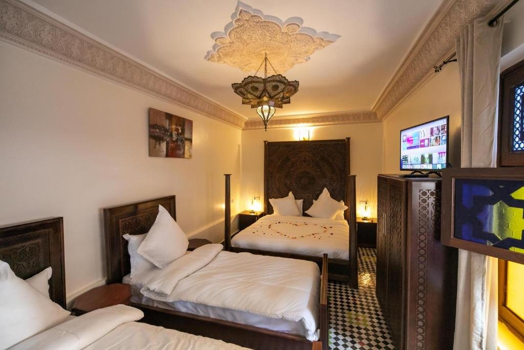 Riad Anis Fès is a charming and elegantly designed riad located in the heart of the Fes Medina, offering guests an authentic Moroccan experience filled with comfort and serenity. The property highlights the beauty of traditional Fassi craftsmanship, featuring colorful zellij tilework, carved cedarwood, and graceful archways that create a peaceful and inviting ambiance. Each room is tastefully decorated with handcrafted Moroccan furnishings and modern amenities, ensuring both style and relaxation. Guests can start their day with a delicious Moroccan breakfast served in the tranquil courtyard or on the rooftop terrace overlooking the Medina’s rooftops and minarets. The riad’s calm atmosphere, combined with the warmth and attentiveness of its hosts, provides a welcoming home away from home. Blending tradition, elegance, and genuine hospitality, Riad Anis Fès offers a memorable and authentic stay in Morocco’s spiritual and cultural capital.