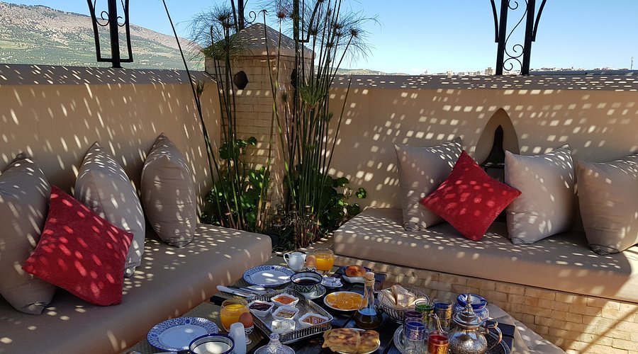 Riad Kettani Fès is a refined and inviting riad located in the heart of the Fes Medina, offering an elegant mix of Moroccan tradition and modern comfort. The property is beautifully restored, featuring exquisite zellij tilework, carved cedarwood details, and serene courtyards that reflect the timeless artistry of Fassi architecture. Each room is tastefully designed with authentic Moroccan décor and modern amenities to ensure a peaceful and comfortable stay. The highlight of the riad is its panoramic rooftop café-terrace, where guests can enjoy a delicious Moroccan breakfast or traditional dishes while overlooking the Medina’s rooftops and minarets. Known for its calm ambiance and attentive hospitality, Café Terrasse Riad Kettani Fès provides a luxurious yet homely atmosphere, making it an ideal retreat for travelers seeking culture, comfort, and the beauty of Moroccan living.