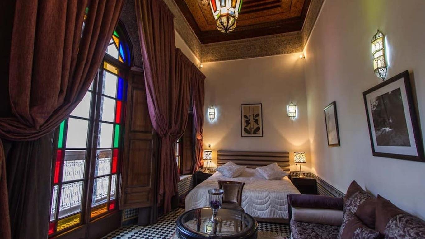 Riad Les Remparts De Fès is a luxurious and elegantly restored riad located along the ancient walls of the Fes Medina, offering breathtaking views and a refined Moroccan experience. The property beautifully combines traditional craftsmanship with modern sophistication, featuring exquisite zellij tilework, carved cedarwood, and graceful arches that reflect the timeless artistry of Fes. Each room and suite is individually designed with authentic Moroccan décor, plush bedding, and modern amenities, providing both comfort and elegance. Guests can start their day with a delicious homemade breakfast served on the panoramic rooftop terrace overlooking the Medina, or unwind in the peaceful courtyard surrounded by lush greenery. The riad also offers a restaurant serving traditional Moroccan cuisine prepared with fresh local ingredients. Known for its warm hospitality and attentive service, Riad Les Remparts De Fès provides a serene and stylish retreat, perfectly blending cultural authenticity, comfort, and charm in one of Morocco’s most captivating cities.
