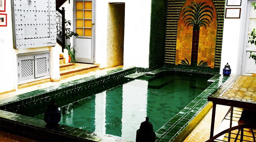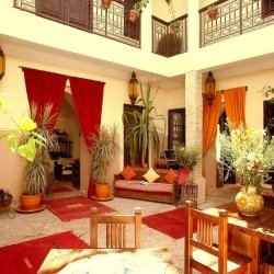 Riad Marrakech *Les Jardins de Mouassine* is a beautifully restored traditional riad nestled in the heart of the Medina, just a short walk from Jemaa el-Fna and the souks. It offers elegantly decorated rooms featuring authentic Moroccan design, with intricate tilework, warm colors, and handcrafted details. Guests can relax in the peaceful courtyard, unwind on the rooftop terrace with panoramic views, or enjoy a homemade breakfast surrounded by lush greenery. Blending charm, comfort, and genuine hospitality, Riad *Les Jardins de Mouassine* provides a serene and authentic Marrakech retreat.