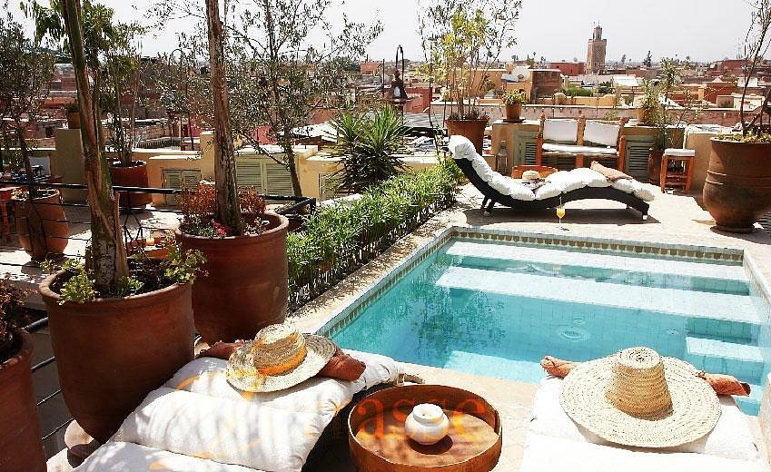 Riad Moullaoud – Riad de Charme Marrakech is a stunning and authentically restored riad located in the heart of the Medina, just a short walk from Jemaa el-Fna square. This elegant property blends historic Moroccan architecture with refined modern comfort, featuring exquisite zellij mosaics, hand-carved cedarwood, and tranquil courtyards with fountains and lush greenery. Each room and suite is individually decorated, combining traditional Moroccan décor, soft lighting, and modern amenities for a serene and luxurious stay. Guests can enjoy a delicious Moroccan breakfast each morning, relax in the courtyard pool, or unwind in the rooftop lounge with panoramic views of the Medina and the Atlas Mountains. The riad also offers a spa and traditional hammam for complete relaxation. Known for its charm, elegance, and warm hospitality, Riad Moullaoud offers an unforgettable and authentic Moroccan experience in the heart of Marrakech.