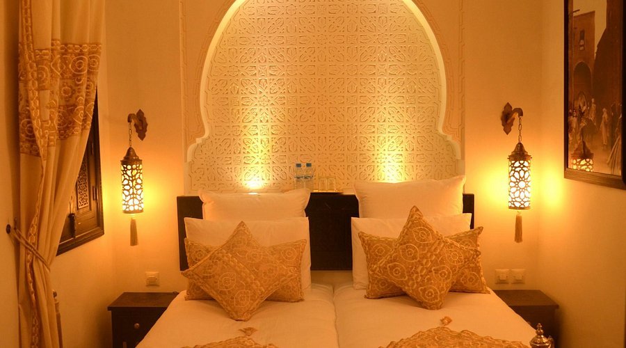 Riad Rêve d’Or Marrakech is a beautifully restored riad located in the heart of the Marrakech Medina, offering guests an authentic Moroccan experience infused with comfort, elegance, and tranquility. The property features exquisite traditional craftsmanship, with colorful zellij tilework, carved cedarwood, and soft tadelakt walls that create a warm and inviting atmosphere. Each room is tastefully decorated in a refined Moroccan style, blending artisanal details with modern amenities for a relaxing stay. Guests can enjoy a delicious homemade Moroccan breakfast each morning, served in the peaceful courtyard or on the rooftop terrace with panoramic views over the Medina and the Atlas Mountains. The riad also features a small pool and a cozy lounge for moments of calm and rest. Known for its serene ambiance, attentive hosts, and elegant design, Riad Rêve d’Or Marrakech offers a charming and intimate retreat in the heart of the red city.