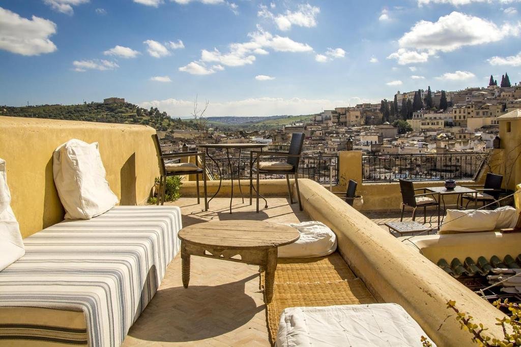 Dar Gnaoua Fès is a charming and elegantly restored riad nestled in the heart of the Fes Medina, offering guests a peaceful retreat that beautifully combines Moroccan authenticity with modern comfort. The property highlights the artistry of Fassi architecture, featuring intricate zellij tilework, carved cedarwood, and arched doorways that create a warm and inviting atmosphere. Each room is tastefully decorated with handcrafted furnishings and traditional décor, providing a cozy and relaxing ambiance. Guests can start their day with a delicious Moroccan breakfast, served on the rooftop terrace offering panoramic views over the Medina’s rooftops and minarets. The riad’s serene setting and attentive hosts ensure a welcoming and personalized experience, perfect for travelers seeking culture and tranquility. With its blend of elegance, charm, and genuine hospitality, Dar Gnaoua Fès offers an unforgettable stay in one of Morocco’s most enchanting historic cities.