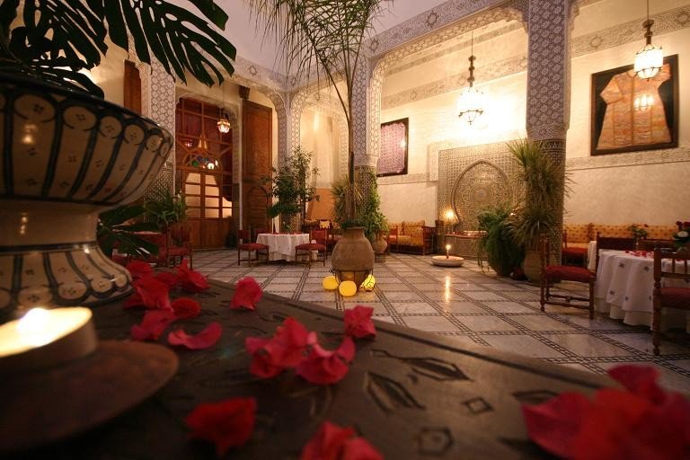 Riad Dar Dmana Fès is a luxurious and historic riad located in the heart of the Fes Medina, offering an exceptional blend of traditional Moroccan elegance and refined comfort. Once a grand family residence, the property has been beautifully restored to showcase the artistry of Fassi craftsmanship, with exquisite zellij tilework, carved cedarwood ceilings, and intricate plaster details. Each room and suite is individually decorated, featuring rich fabrics, antique furnishings, and modern amenities that create a warm and sophisticated ambiance. Guests can enjoy a generous Moroccan breakfast or savor authentic local cuisine in the elegant dining room or on the rooftop terrace with panoramic views of the Medina. Known for its impeccable service, serene atmosphere, and attention to detail, Riad Dar Dmana Fès provides an unforgettable experience that captures the essence of Moroccan hospitality and timeless beauty.