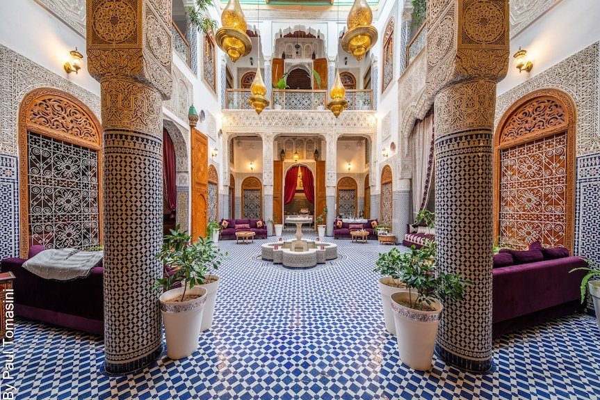 Riad Fes Nass Zmane is a beautifully restored riad that captures the essence of Moroccan elegance and warm hospitality. Ideally located in the heart of the Fes medina, this charming guesthouse combines traditional craftsmanship with modern comfort. The architecture features exquisite zellige mosaics, carved plaster, and cedar wood details that reflect the city’s rich cultural heritage. Each room is uniquely decorated, offering a cozy and refined ambiance with all the amenities needed for a relaxing stay. Guests can enjoy a delicious homemade Moroccan breakfast on the terrace while admiring panoramic views of the medina, or unwind in the peaceful courtyard surrounded by soothing décor. Known for its welcoming hosts and tranquil atmosphere, Riad Fes Nass Zmane offers an authentic and memorable stay — a true reflection of the beauty, culture, and warmth of Fes.