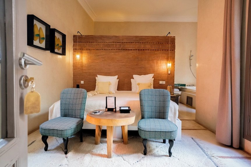 Riad O Marrakech is a refined accommodation in Marrakech, offering an authentic Moroccan ambiance combined with modern comfort. Ideally situated at 10 Derb, Sidi Ahmed Oumoussa, Morocco, this property allows guests to immerse themselves in the vibrant culture of Marrakech while enjoying tranquility and personalized service. The hotel features beautifully decorated rooms inspired by traditional Moroccan architecture, with elegant details, comfortable furnishings, and warm tones that create a welcoming atmosphere. Guests can relax in serene courtyards, enjoy panoramic views from rooftop terraces, or indulge in local cuisine prepared with fresh ingredients. Many rooms are equipped with modern amenities such as air conditioning, Wi-Fi, and private bathrooms, ensuring a pleasant stay for both leisure and business travelers. The location offers easy access to Marrakech’s main attractions, including bustling souks, historical monuments, and the famous Jemaa el-Fna square. Whether you are seeking a romantic getaway, a cultural adventure, or simply a peaceful retreat, Riad O Marrakech in Marrakech provides the perfect balance of tradition, comfort, and Moroccan hospitality.