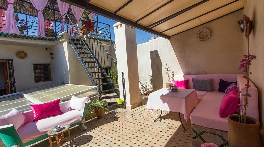 Riad Sanaa Rose in Fes is a graceful and welcoming riad that beautifully embodies the charm and refinement of traditional Moroccan living. Nestled in the historic medina, this elegant guesthouse showcases exquisite craftsmanship — colorful zellige tiles, carved cedar wood, and ornate plasterwork that reflect the rich cultural heritage of Fes. Each room is uniquely styled, blending authentic Moroccan décor with modern comfort to create a serene and inviting atmosphere. Guests can enjoy a delicious homemade breakfast or traditional meals on the rooftop terrace, which offers panoramic views of the medina and the surrounding hills, or relax in the tranquil courtyard filled with soft light and soothing details. Known for its warm hospitality, calm ambiance, and attention to detail, Riad Sanaa Rose offers an authentic and memorable experience — a perfect haven for travelers seeking comfort, beauty, and the true spirit of Fes.