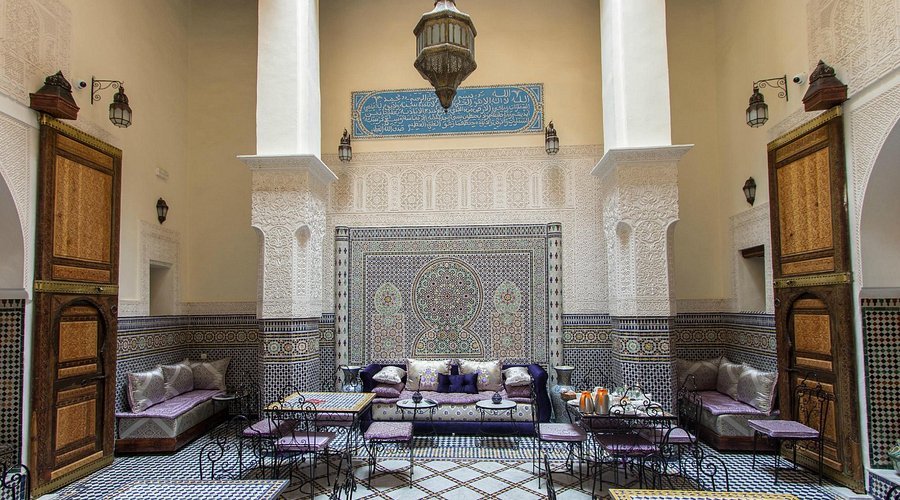 Riad Taryana Fès is a beautifully restored riad nestled in the heart of the Fes Medina, offering an authentic Moroccan experience with elegance, comfort, and warmth. The property highlights the artistry of traditional Fassi architecture, featuring colorful zellij mosaics, hand-carved cedarwood, and ornate plaster details that create a serene and refined atmosphere. Each room is individually designed, combining rich Moroccan décor with modern amenities to ensure a comfortable and relaxing stay. Guests can enjoy a delicious homemade breakfast each morning, served in the peaceful courtyard or on the rooftop terrace with panoramic views of the Medina. The riad’s tranquil ambiance, combined with the genuine hospitality of its hosts, makes it a welcoming retreat after a day of exploring the city’s cultural treasures. Blending traditional charm, comfort, and attentive service, Riad Taryana Fès offers an unforgettable stay in Morocco’s spiritual and historic capital.