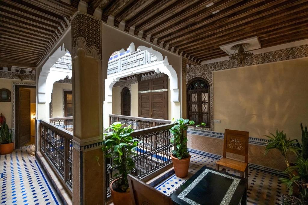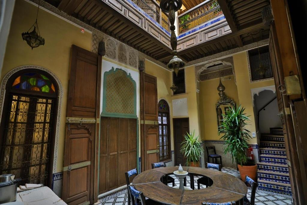 Saphiryad Fès is a beautifully designed and elegantly restored riad located in the heart of the historic Fes Medina, offering guests an authentic Moroccan experience infused with comfort and sophistication. The property captures the essence of Fassi craftsmanship with exquisite zellij tilework, carved cedarwood, and refined arches that create a serene and luxurious ambiance. Each room is tastefully decorated, blending traditional Moroccan décor with modern amenities to provide both charm and relaxation. Guests can enjoy a delicious Moroccan breakfast each morning, served in the peaceful courtyard or on the rooftop terrace with stunning panoramic views of the Medina. The riad’s calm atmosphere, combined with attentive and friendly hosts, ensures a warm and personalized experience. Blending heritage, elegance, and genuine hospitality, Saphiryad Fès offers a truly memorable stay in one of Morocco’s most enchanting and culturally rich cities.